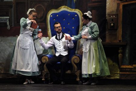 «Сегодня, по сути, у нас тройная премьера: новогоднего утренника, мюзикла «Мэри Поппинс», а третья премьера — сказка «Царевна Ква-Ква» на Новой сцене, которую мы покажем в городах Республики — Старобешево, Новоазовске и поедем с ним в Горловку.