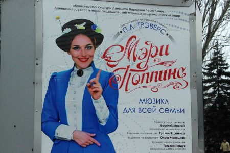 В Донецком государственном академическом музыкально-драматическом театре имени Марка Бровуна утром 23 декабря состоялась премьера мюзикла для всей семьи «Мэри Поппинс» по мотивам сказочной повести Памелы Линдон Трэверс (режиссер-постановщик – Василий Маслий). Перед его началом в фойе театра возле большой елки традиционно прошла новогодняя интермедия с участием артистов театра, воспитанников школы-студии «Перспектива» и студентов Донецкого колледжа культуры и искусств. Об этом сообщает dnr-online.ru.
