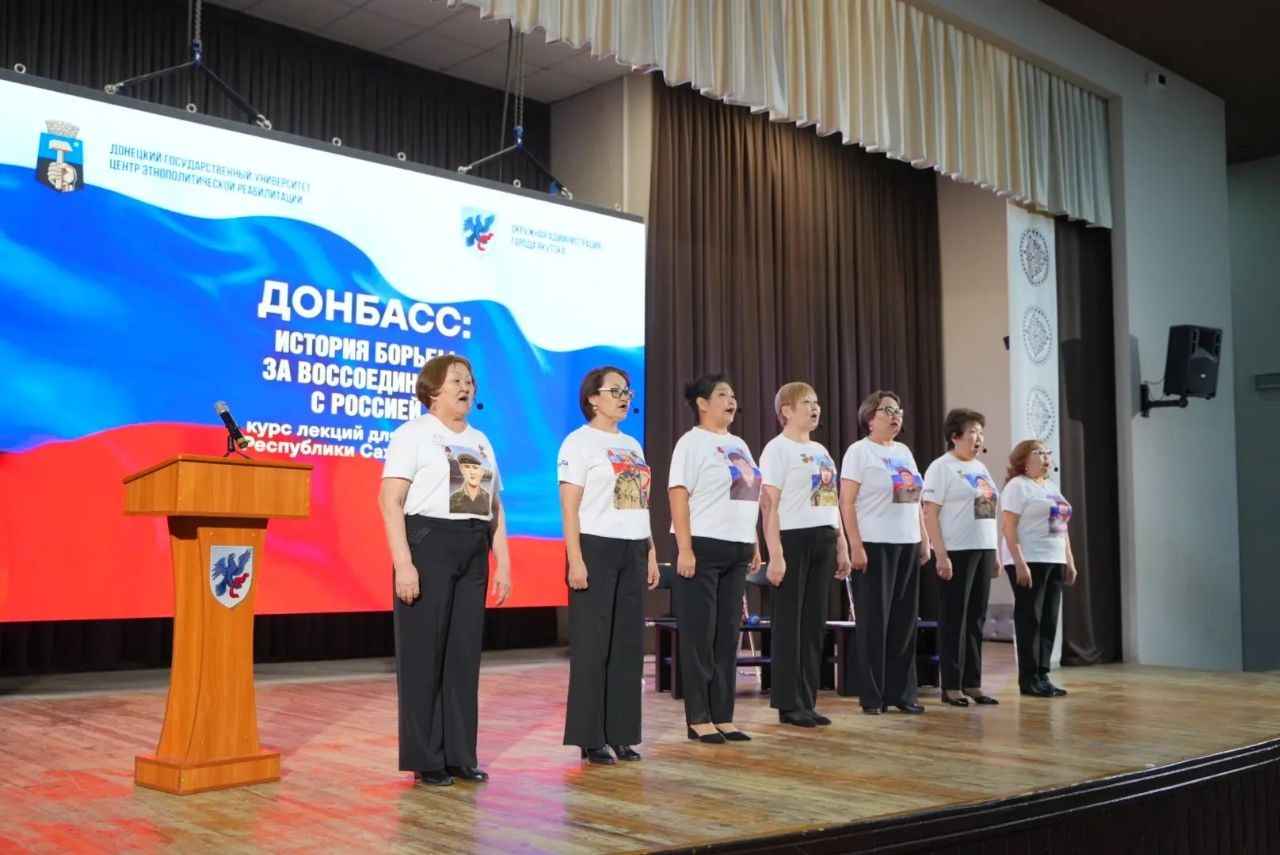 Гости встретились с сотрудниками структурных подразделений городской администрации, рассказали о причинах возникновения конфликта в Донбассе и презентовали издание, состоящее из восьми лекций. Книга посвящена предпосылкам конфликта и периоду, предшествовавшему воссоединению с Россией. Отдельная глава освещает вклад жителей Якутии в защиту Донбасса в ходе специальной военной операции, а также их участие в восстановлении мирной жизни региона.