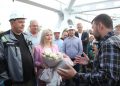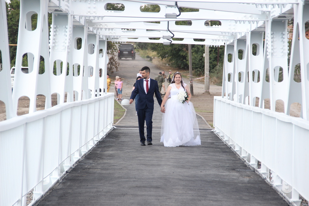 В ходе осмотра искусственного сооружения была заложена традиция для молодоженов. Молодая семья, которая работала на строительстве нового моста, в день свадьбы закрепила замок на перилах в знак любви и верности.