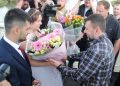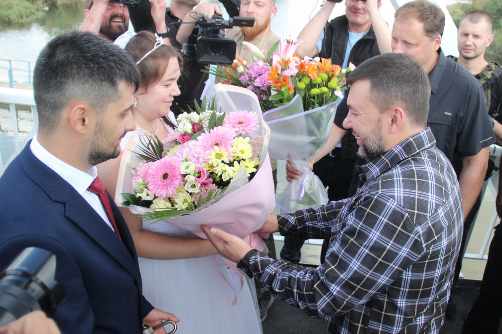 Денис Пушилин и Евгений Хромушин поздравили молодоженов с днем бракосочетания.