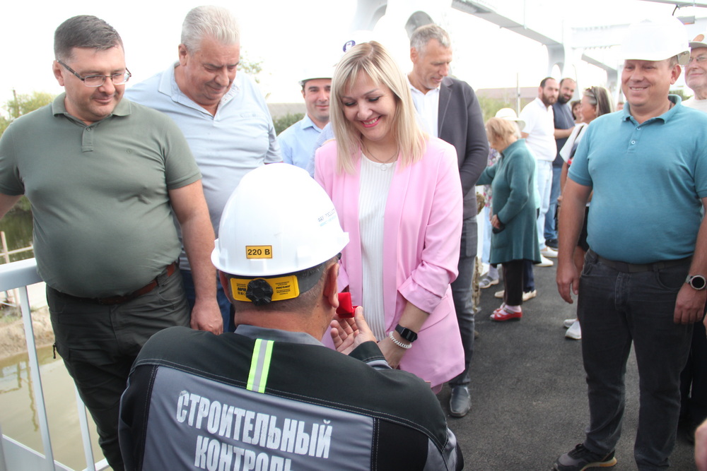 Также руководителю региона показали памятный камень, который был заложен на подходе к мосту. После доклада символично был открыт мост переворачиванием знака в положение «Проход открыт». Затем участники мероприятия прошлись по новому мосту.