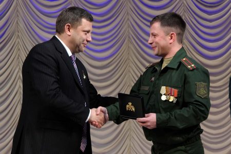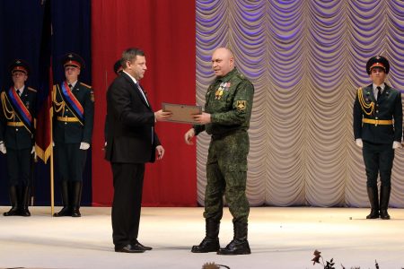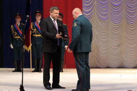 За особо выдающиеся заслуги перед Республикой Глава ДНР Александр Захарченко наградил первого заместителя командира войсковой части 00100, генерал-майора Дениса Синенкова и первого заместителя командира войсковой части 08803, полковника Геннадия Алябьева «Орденом Республики».
