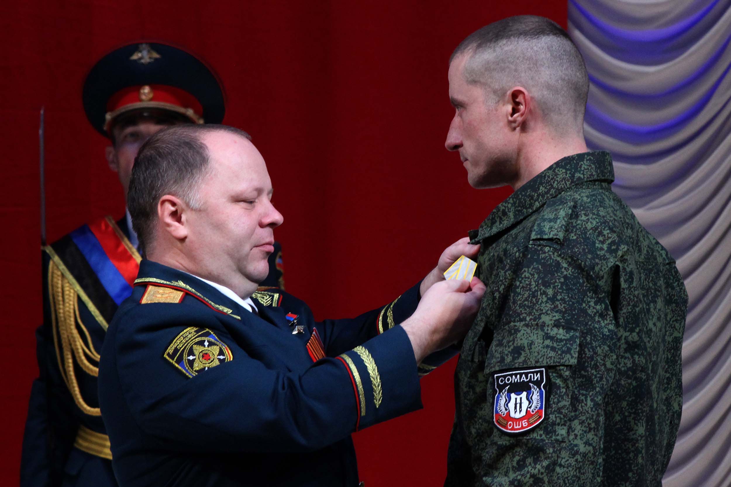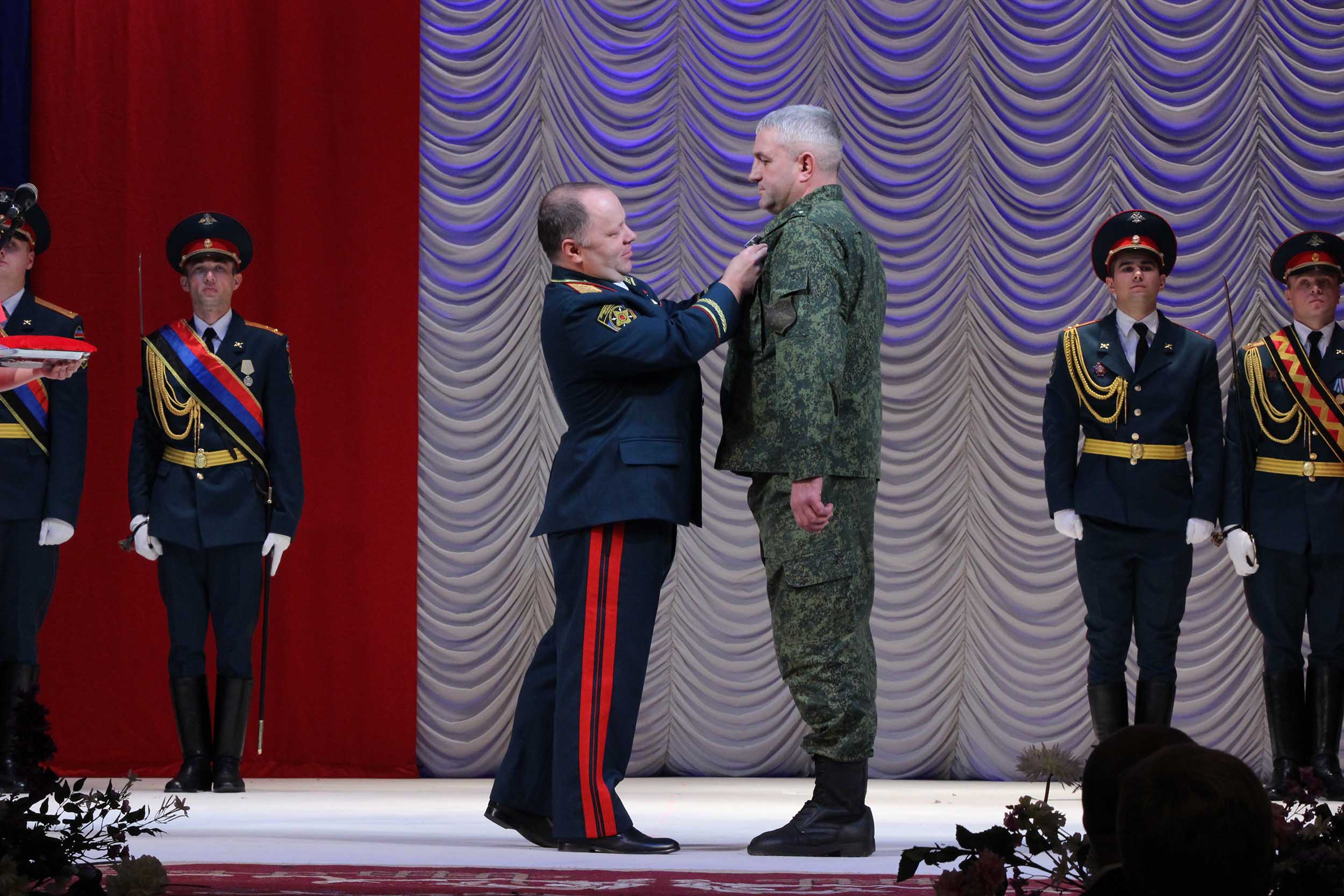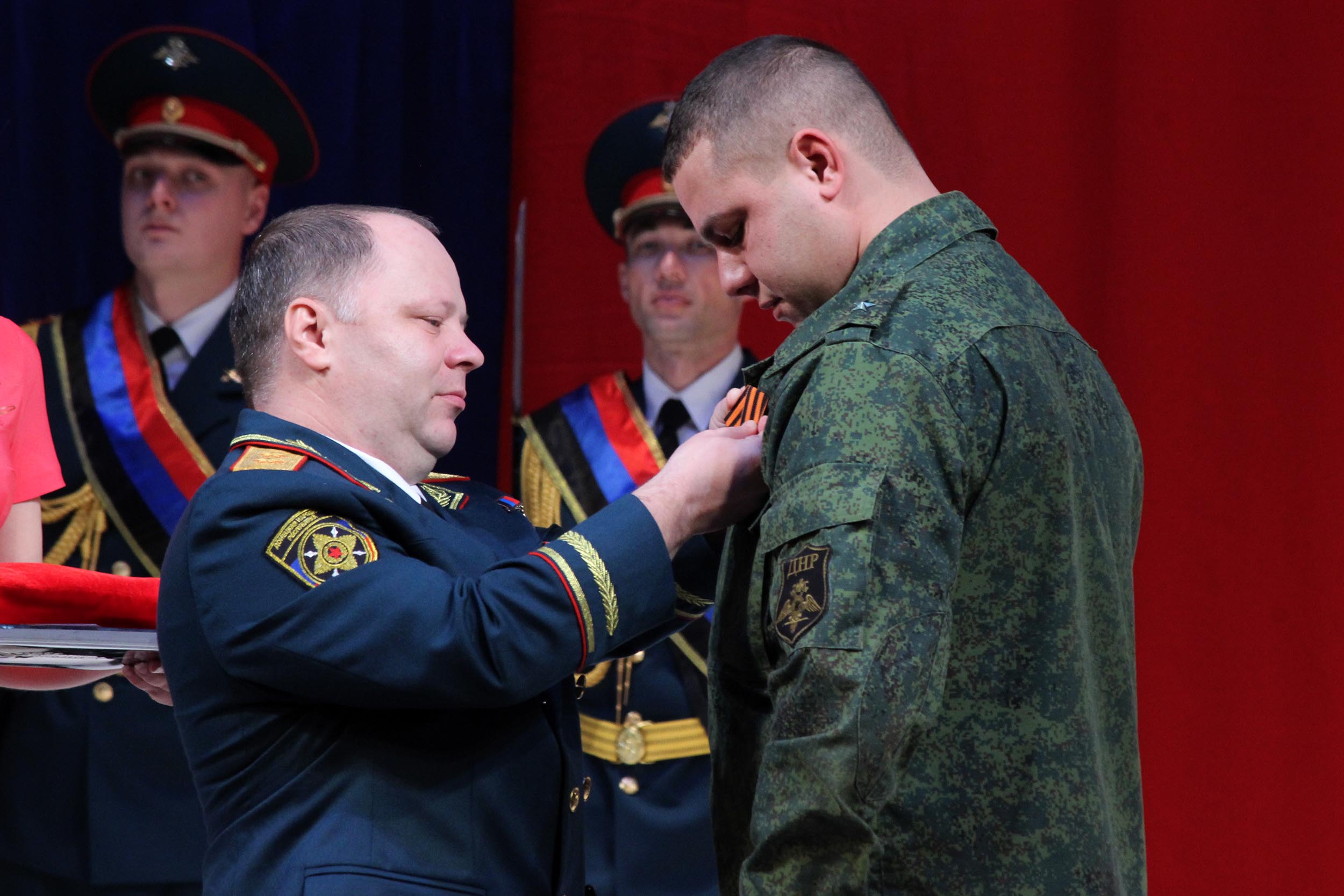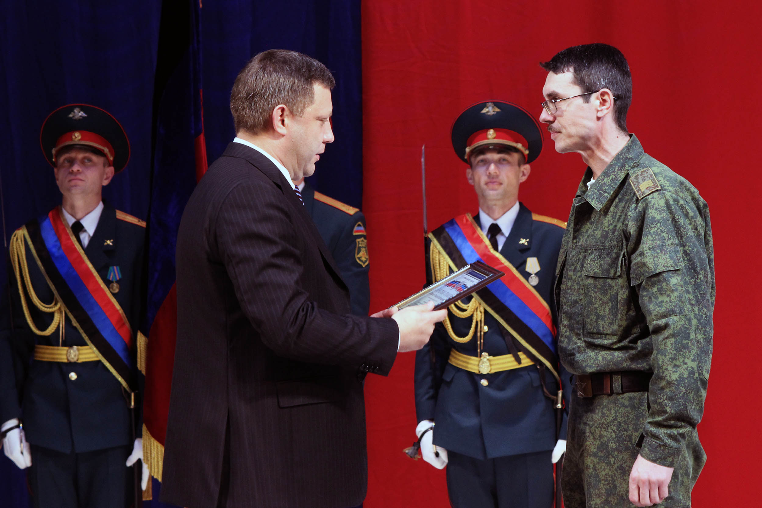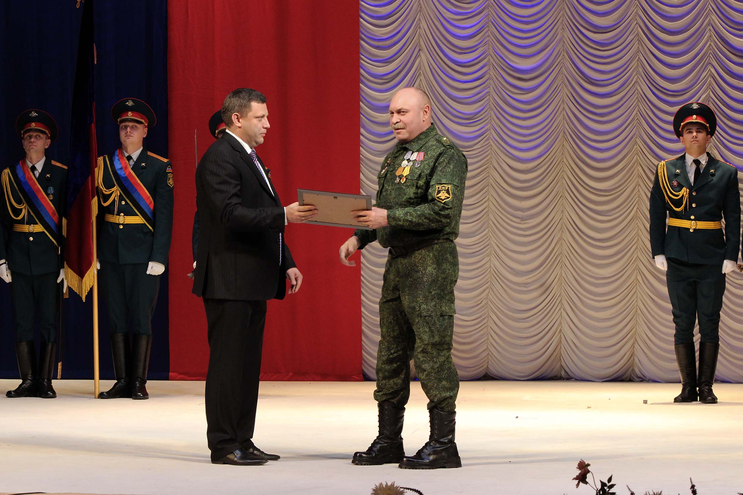 За особо выдающиеся заслуги перед Республикой Глава ДНР Александр Захарченко наградил первого заместителя командира войсковой части 00100, генерал-майора Дениса Синенкова и первого заместителя командира войсковой части 08803, полковника Геннадия Алябьева «Орденом Республики».