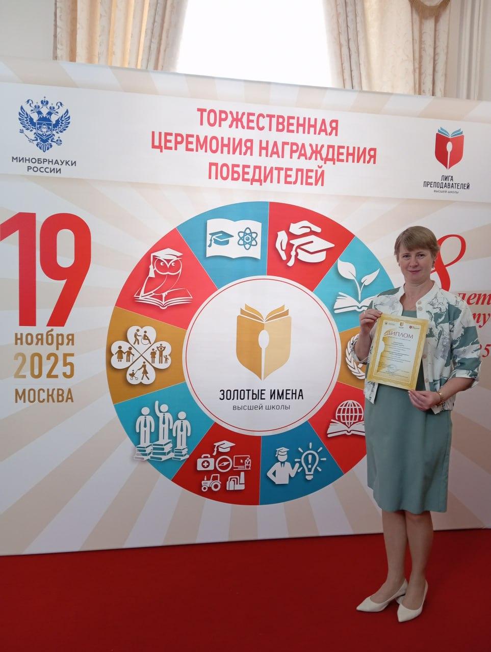 Доктор педагогических наук одержала победу в номинации «За развитие практико-ориентированного высшего образования». Конкурс проводился Общероссийской общественной организацией «Лига Преподавателей Высшей Школы» при участии Министерства науки и высшего образования России.