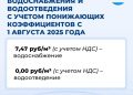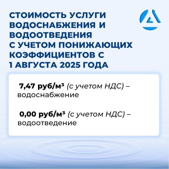 По поручению Президента РФ Владимира Путина утвержден временный понижающий коэффициент к тарифам на услуги водоснабжения и водоотведения. С 1 августа цена услуги водоснабжения за 1 куб. м составит 7,47 руб, на услуги водоотведения – 0,00 руб, сообщили в «Воде Донбасса».