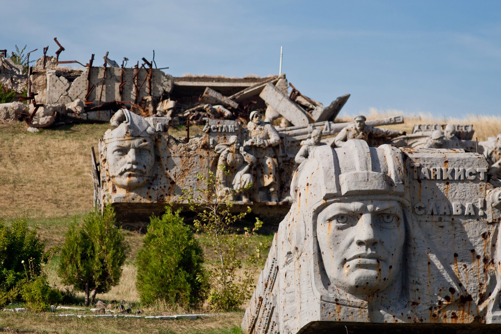 В отличие от танка Т-34-85, что стоит на постаменте у оперного театра, эта машина, в прямом смысле, «хлебнула» военных невзгод. Корпус танка был изготовлен в 1943 году, башня — 1944 года. Танк воевал, горел, затонул где-то на фронтовой переправе, но был поднят и в послевоенное время занял свое место на открытой площадке Мемориального комплекса «Саур-Могила».