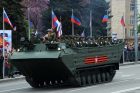 Также на параде прошла современная боевая техника вооруженных сил: бронетранспортеры БТР-80, боевые машины пехоты БМП-2, основные боевые танки Т-72 и Т-64, самоходные артиллерийские установки 2С1 «Гвоздика», плавающие транспортеры ПТС-2, зенитно-ракетные комплексы «Стрела-10», различные артиллерийские системы, 120-мм полковые минометы.