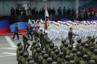 По главной площади столицы ДНР промаршировали военнослужащие частей и подразделений Народной милиции ДНР, МВД, Внутренних войск и МЧС, курсанты и лицеисты.