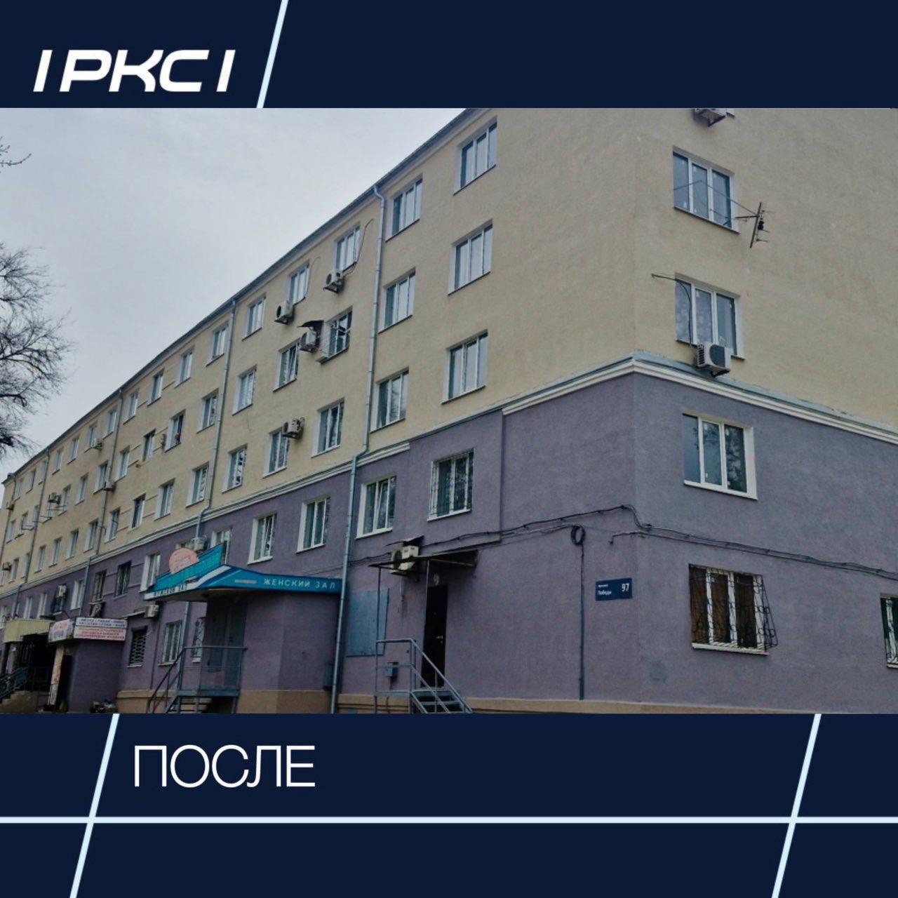 На проспекте Победы завершается восстановление дома: отремонтированы конструктив, кровля, места общего пользования, установлены новые окна и двери, обновлен фасад, восстановлены отопление, водоснабжение, канализация и электрика. В работе — отмостка.