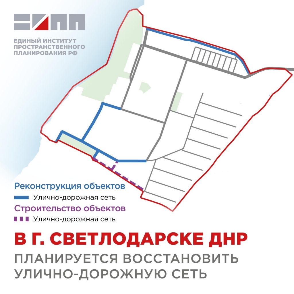 Единый институт пространственного планирования РФ разработал предложения по развитию улично-дорожной сети (УДС) города Светлодарска в рамках подготовки генерального плана населённого пункта. Проект предусматривает комплексное обновление и расширение транспортной инфраструктуры.