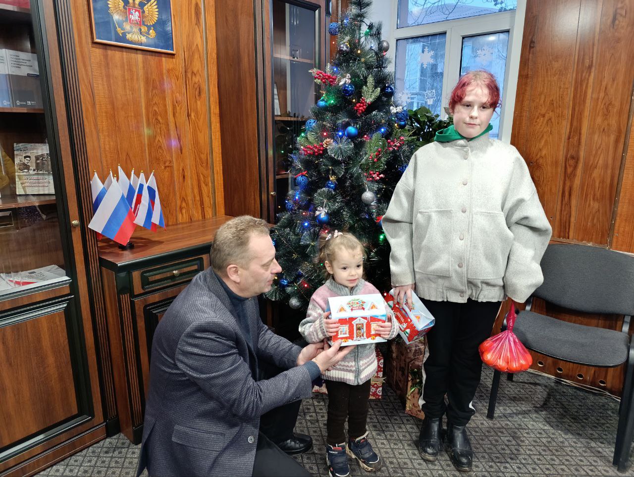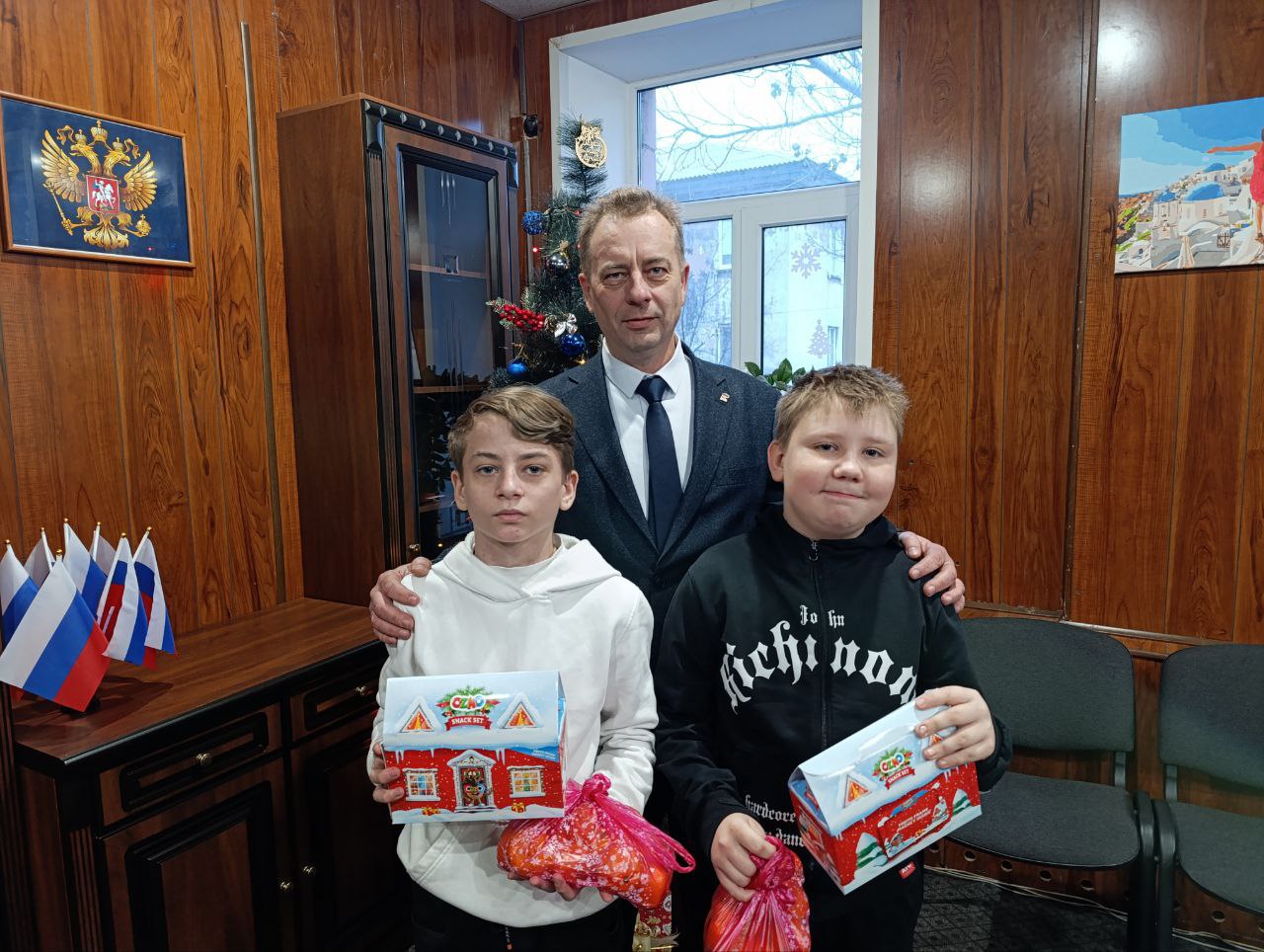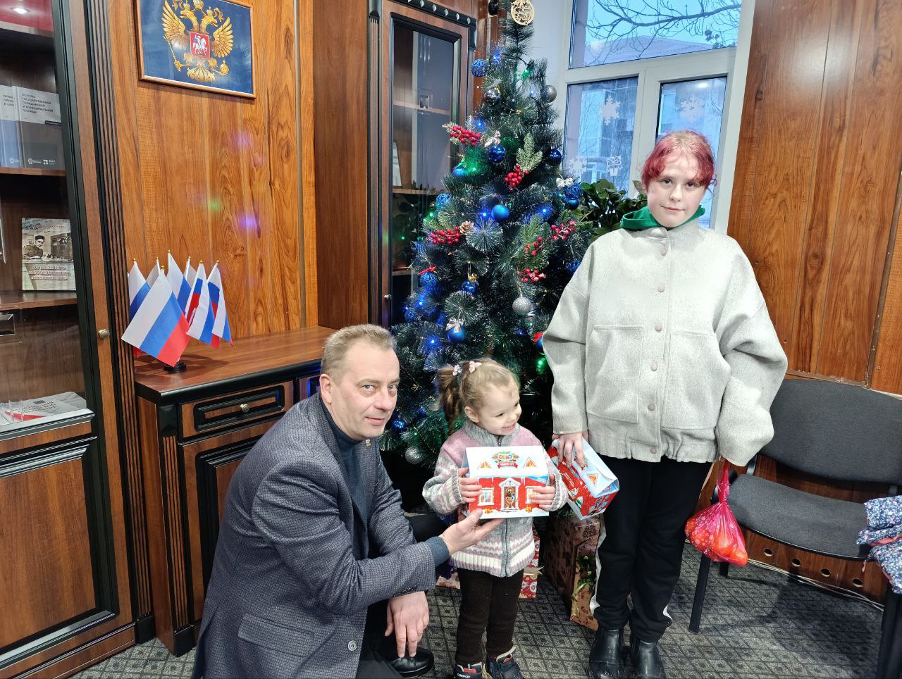 В День Николая Чудотворца в Администрации Краснолиманского муниципального округа состоялось состоялось поздравление детей из социально незащищенной категории. Временно исполняющий полномочия главы округа Олег Пономарев поздравил ребят и вручил им сладкие подарки.